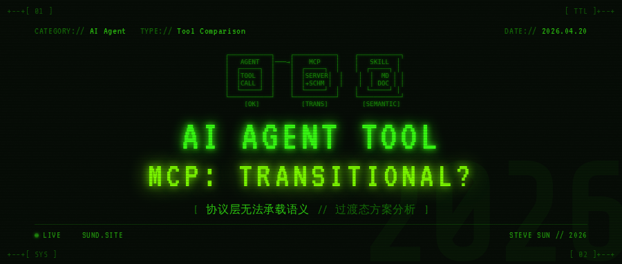 如果你做过 AI Agent 开发,大概率已经用过 MCP,也可能接触过 Agent Skill 的概念。我们不需要再解释它们是什么——这篇文章要回答的问题是:当两者都能实现"让 AI 调用工具"这件事时,为什么我认为 MCP 是一个会被淘汰的过渡态方案。