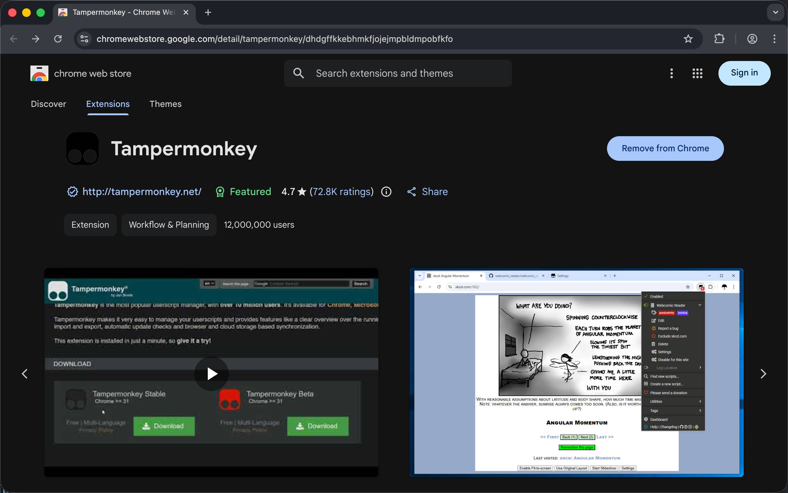 在此之前的基础教程系列中,为了演示创建了多个 Chrome 扩展程序,它们通常都比较简单。所以在本章,我将说明扩展之外另一种允许用户修改网页的标准:User Script,它的基本思路非常简单,向用户浏览的网站注入自定义的一个脚本片段。但与扩展不同,使用 User Script 通常需要安装一个脚本管理器,例如