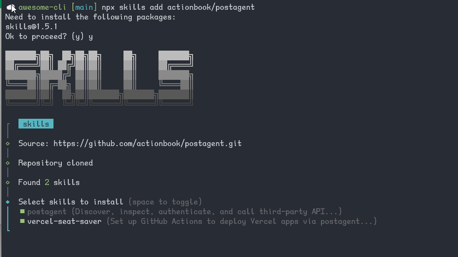 npx skills add actionbook/postagent