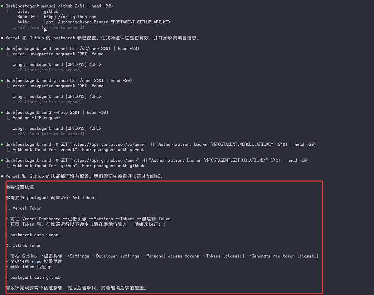 vercel seat saver 会在启动完成后,自动获取你的当前仓库的情况,并指引你去完成具体的动作,并给出对应的命令,来完成配置。