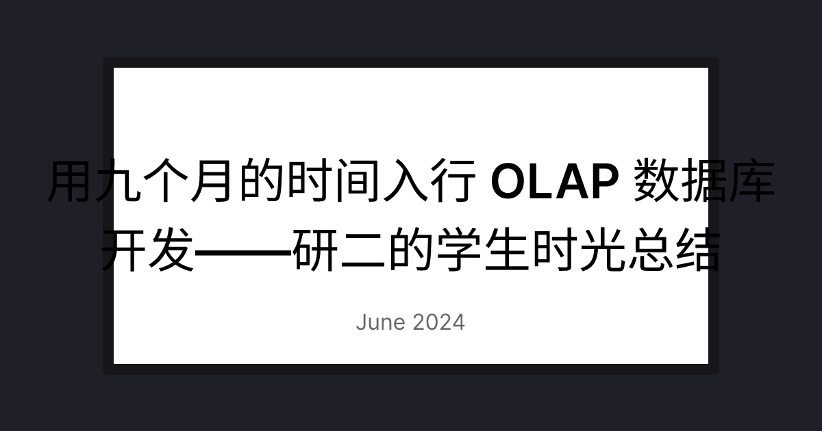 用九个月的时间入行 OLAP 数据库开发——研二的学生时光总结 FKY&JYQ Feng Kaiyu 2024年6月6日 16:34 记录 2022 年末到 2023年底(研二到研三上半学期)的学习、生活与秋招