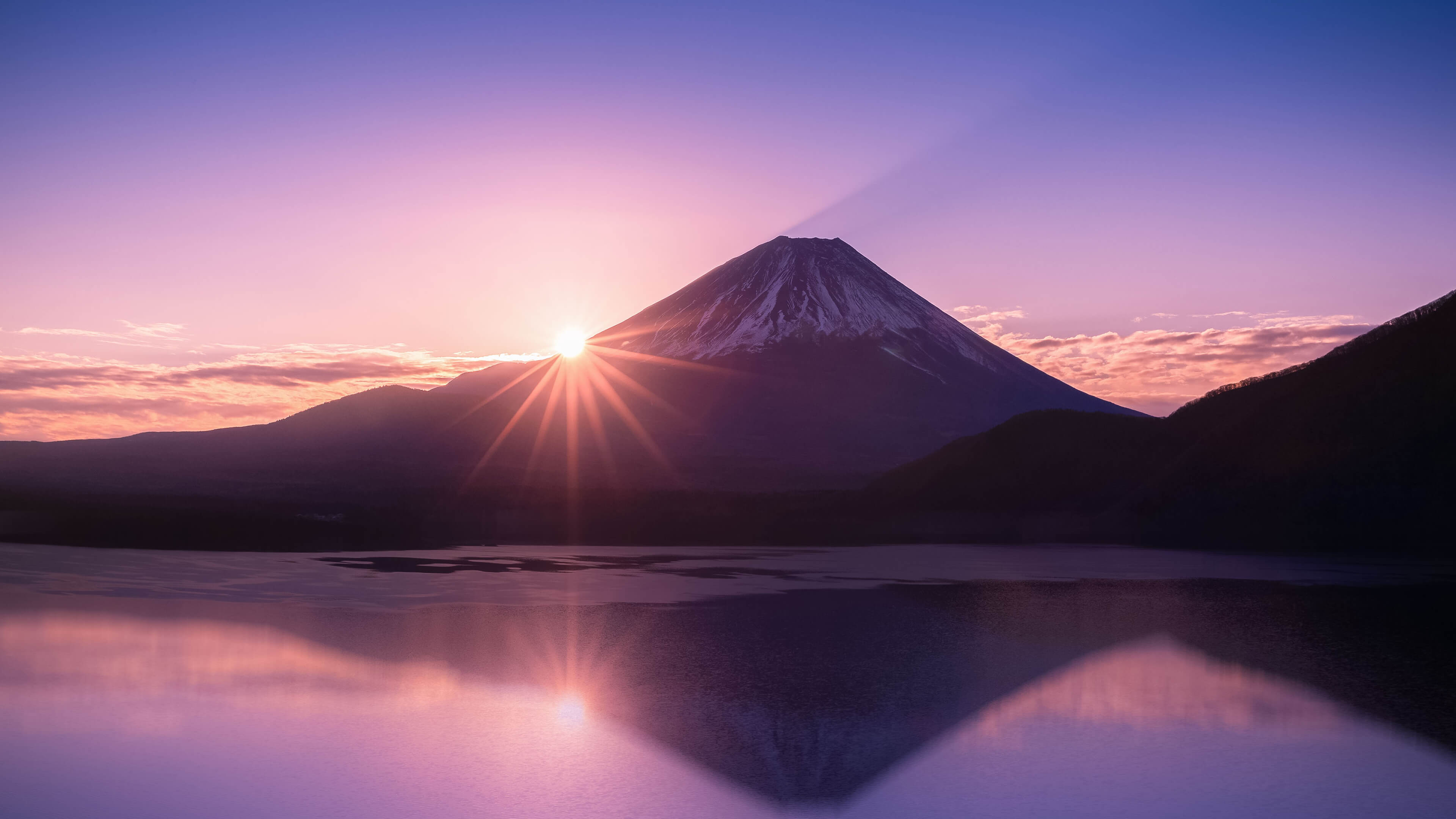 本栖湖から見る富士山の日の出, 山梨県 (© Sakarin Sawasdinaka/Shutterstock)